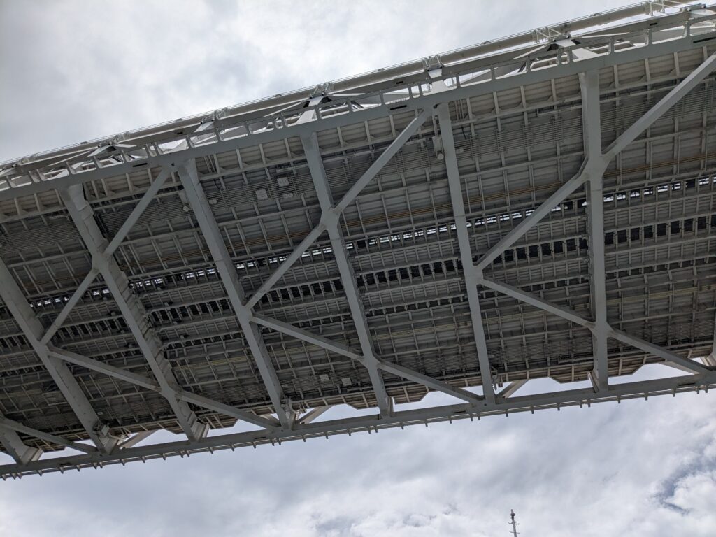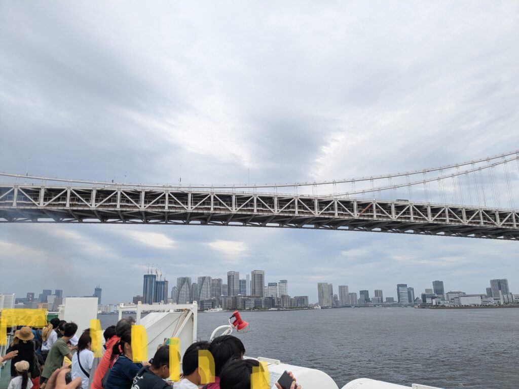 まずはレインボーブリッジをくぐり抜けます。