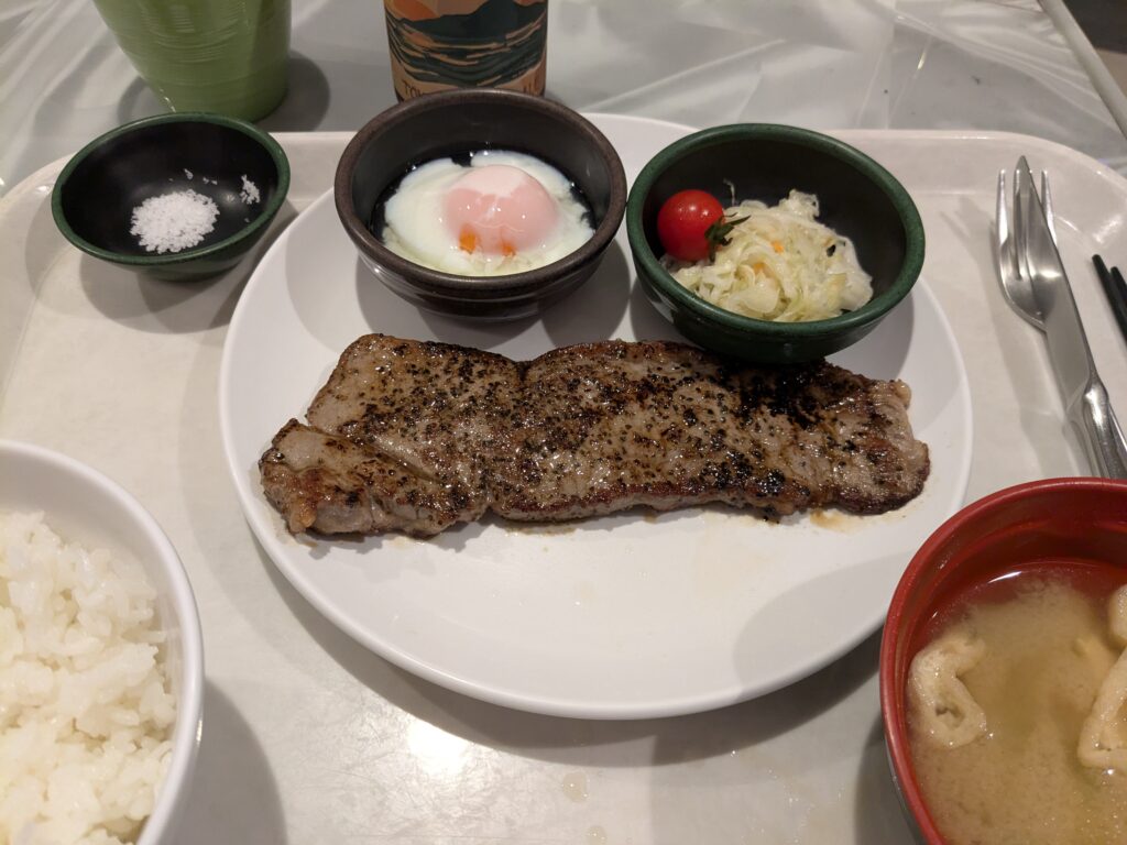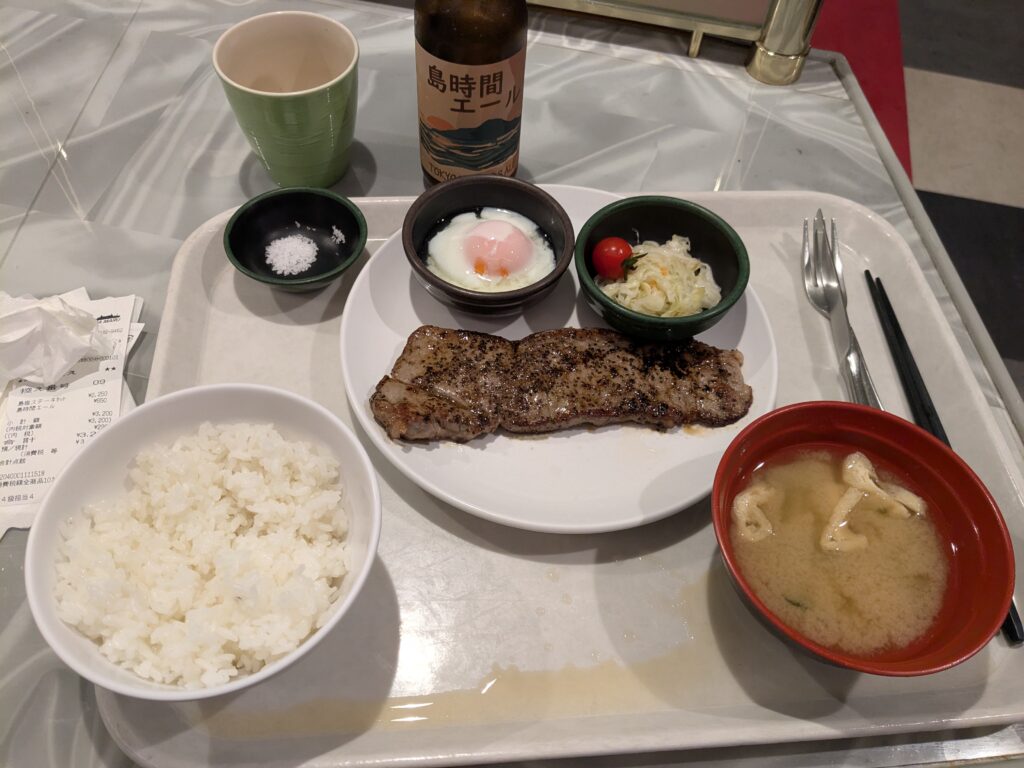 父島産島塩の牛ステーキです。