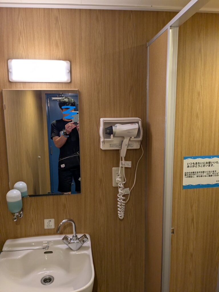 ふだんと違う海の上、ついつい外部のデッキで長時間いろいろなものを眺めていると、潮風で髪がベタつき気持ち悪くなります。